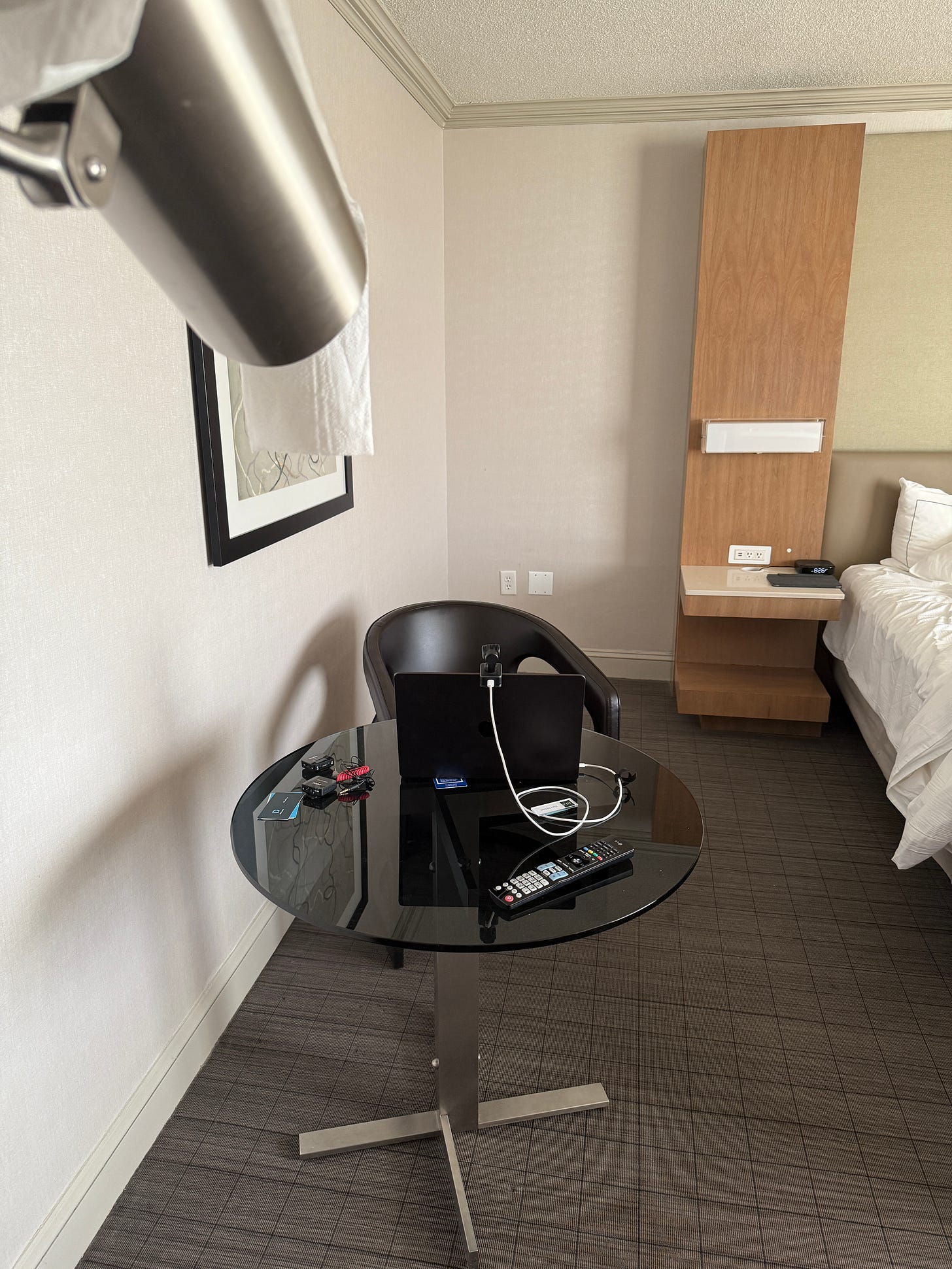 I’m also on the road this week, spending time in Washington, DC for a Harwood Salon Dinner (last night), meeting with some folks on the Hill today, and then headed to GMU’s Fairfax campus to catch up with friends in the afternoon. This means that I had to prepare to do my media hit from a hotel room, which is less than ideal, so I wanted to take this opportunity to show how I do it in case it helps anyone else.